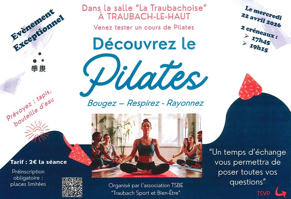 L'association TSBE vous propose 2 cours de Pilates découverte avec deux créneaux au choix :