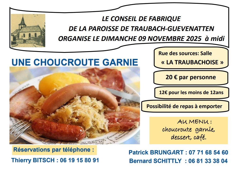 organise le dimanche 09 novembre 2025 à midi à la salle des fêtes la Traubachoise à Traubach-Le-Haut